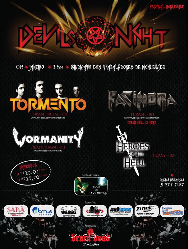 O Devil’s Night II contará com a presença das bandas Tormento(Thrash Metal-BH), Facínora (Thrash Metal – BH) Wormanity (Death/Thrash Metal -BH) e Heroes of the Hell (Heavy Metal – João Monlevade).
