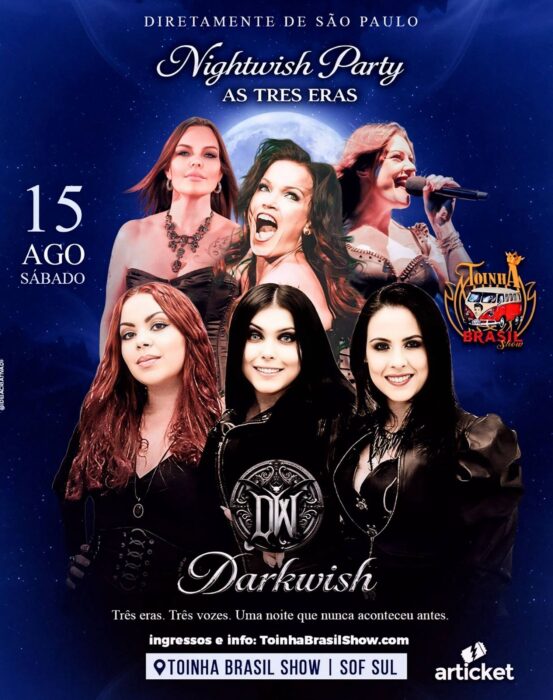 O universo do symphonic metal ganha uma celebração especial em 2026 com a realização da Nightwish Party – As Três Eras | Tour 2026, espetáculo concebido pela banda brasileira Darkwish que propõe uma experiência audiovisual imersiva dedicada às diferentes fases vocais da icônica banda finlandesa Nightwish.