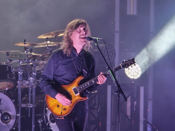 Quando Opeth chegou, abriu com o enigmático “§1”, um prelúdio atmosférico que estabeleceu imediatamente o clima da noite: denso, misterioso, ritualístico. Sem cerimônias, partiram direto para a pancada com “Master’s Apprentices”, uma das faixas mais pesadas e caóticas da era Deliverance. Ali já estava claro que o público não veria um show apenas acústico ou contemplativo, seria um mergulho profundo na dualidade típica do Opeth.