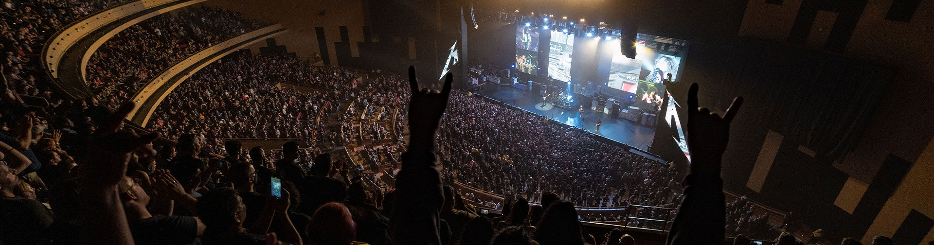 Durante um dos shows comemorativos de 30 anos na banda o Metallica com com a...